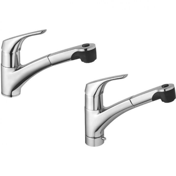 CERASPRINT NEW Однорукоятковый смеситель для кухонной мойки под 1 отверстие с выдвижным изливом, литой излив с 2-х функциональным вытяжным пластиковым душем, система монтажа EASY-FIX, гибкая подводка G3/8”, картридж IS 47 мм CLICK, шланг 1500 мм, металлическая рукоятка с индикаторами горячей/холодной воды